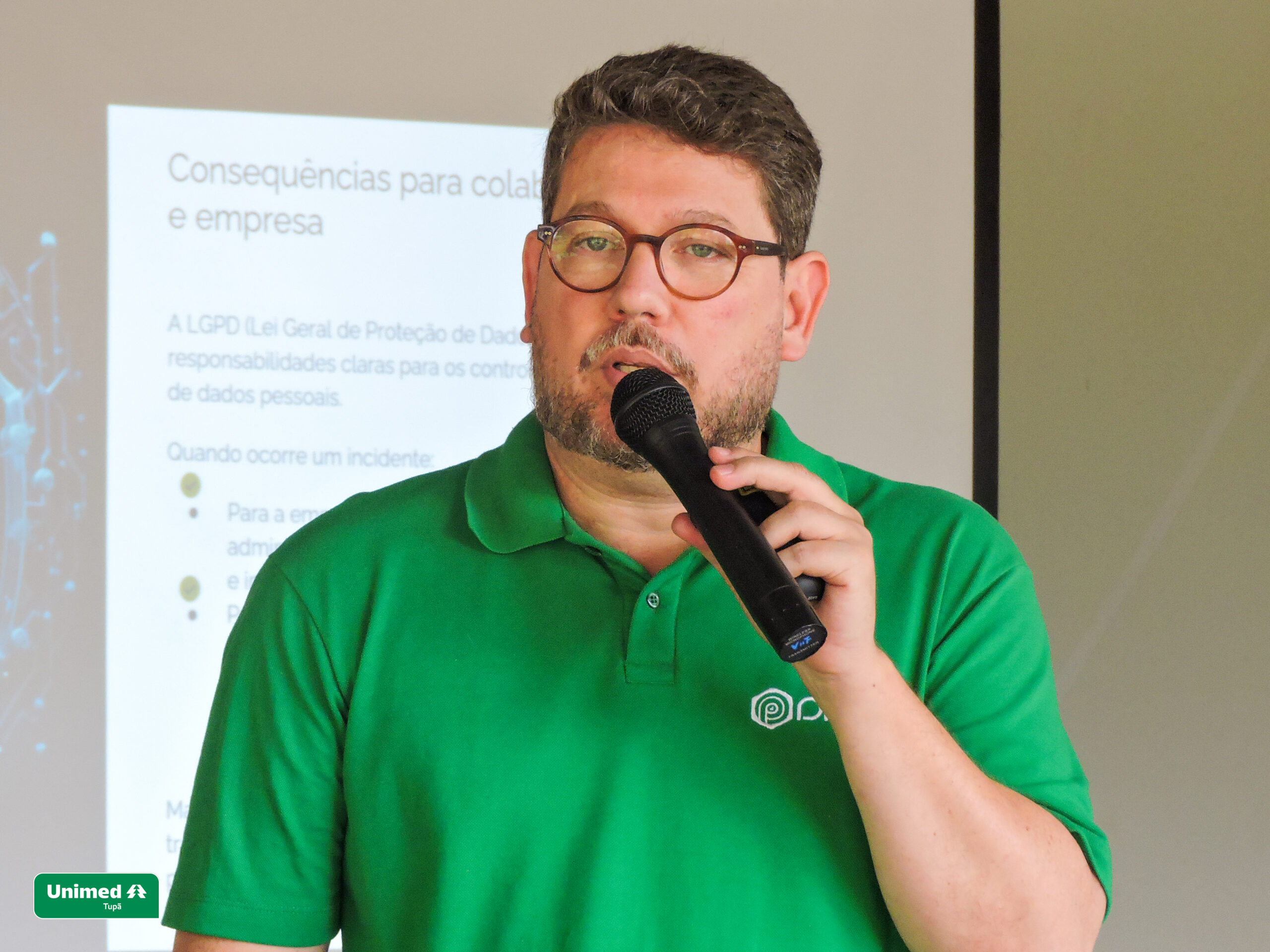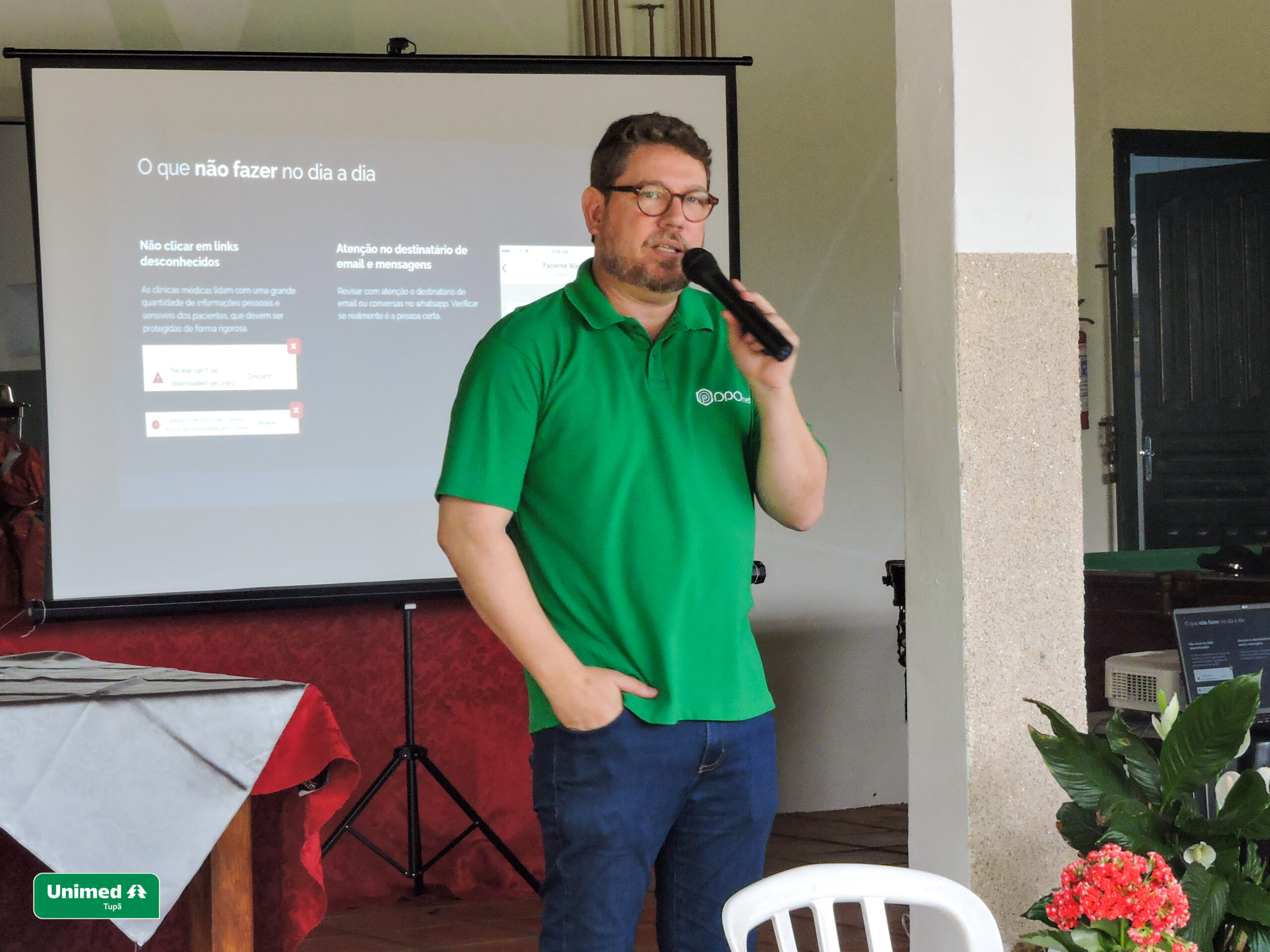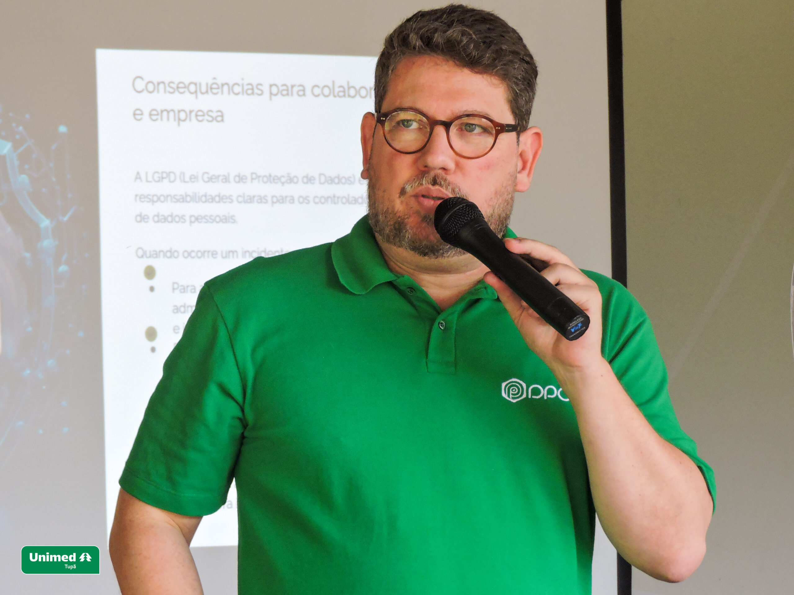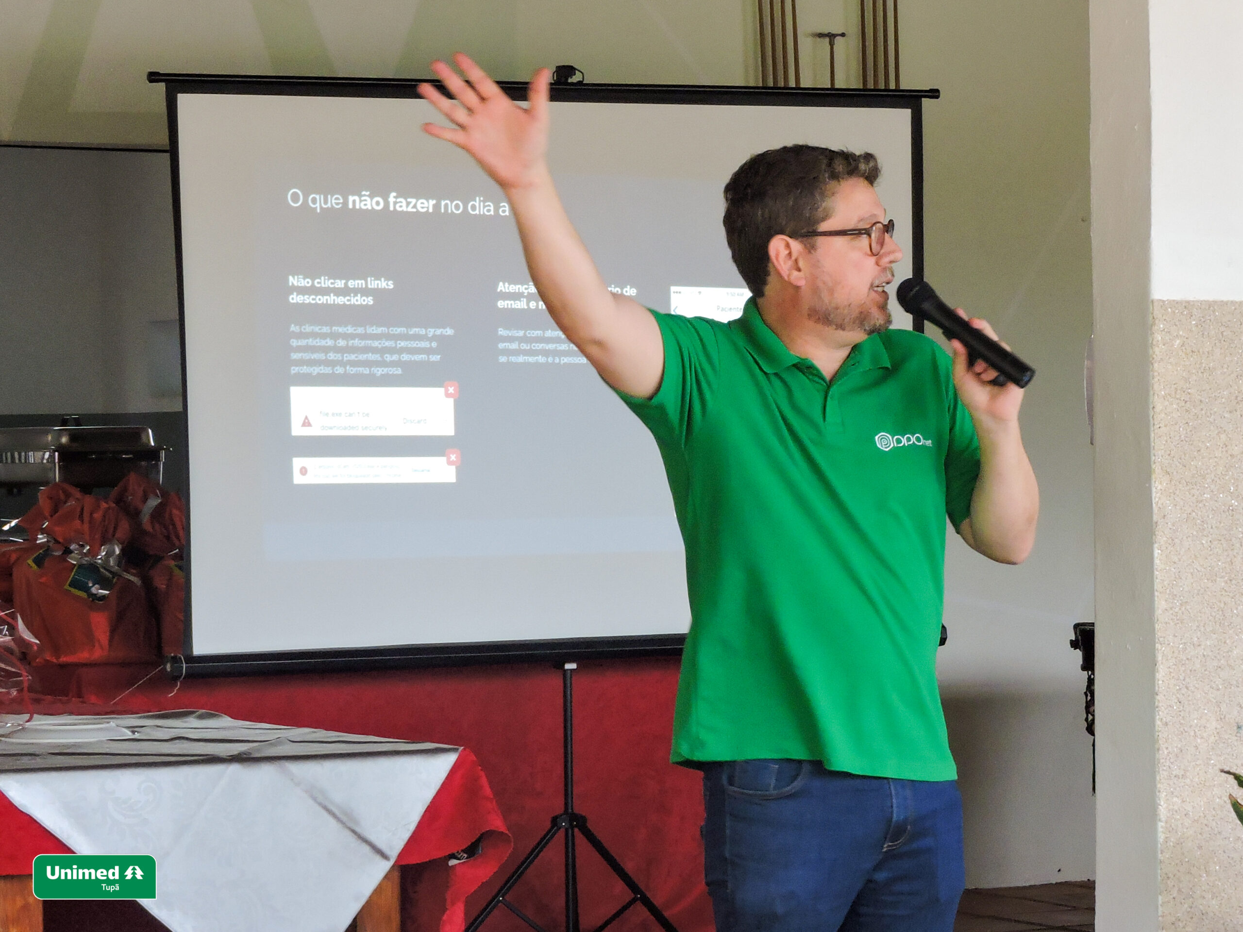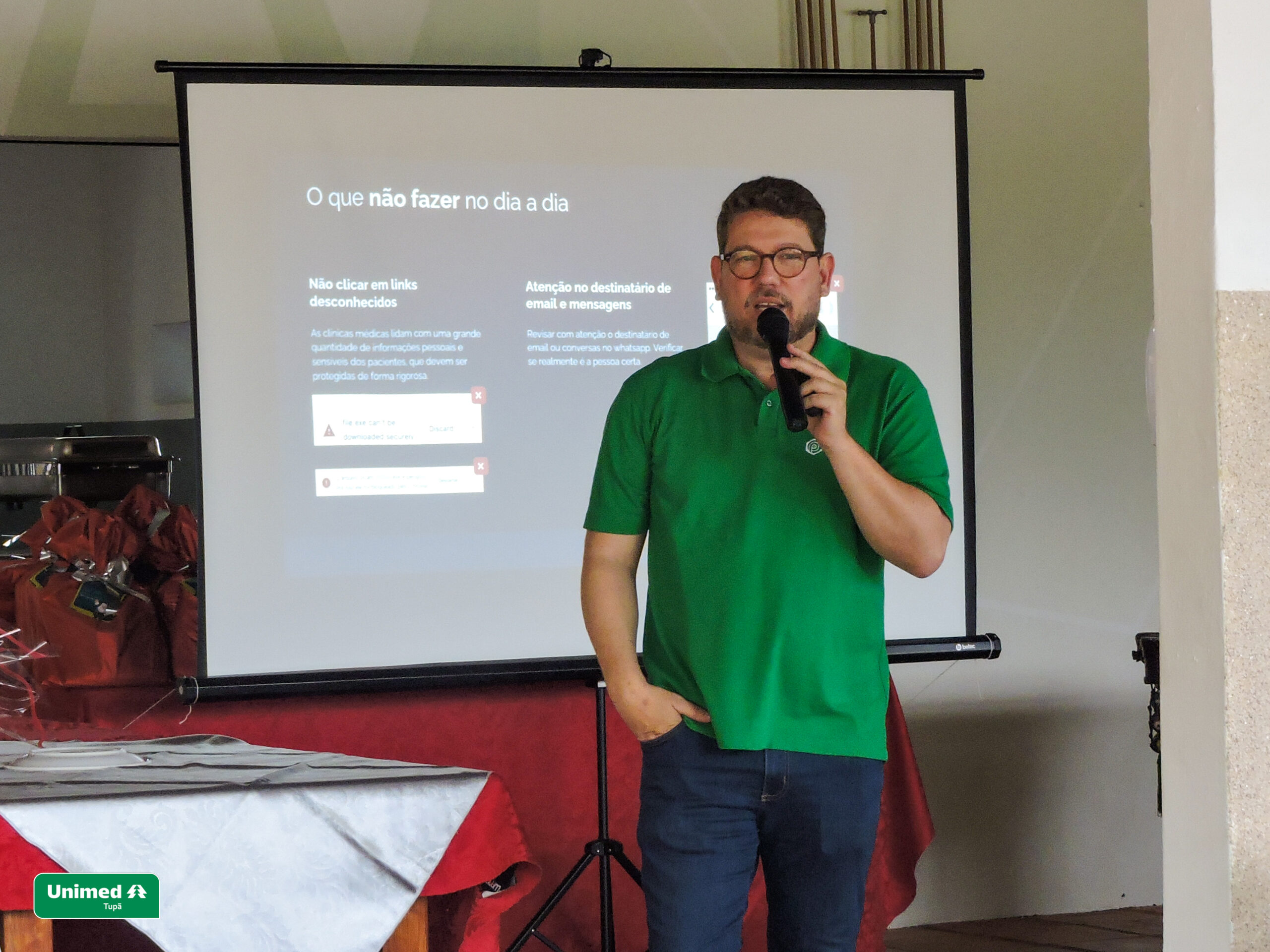 Durante a palestra, foram abordados conceitos fundamentais da LGPD, boas práticas no dia a dia de trabalho e a importância do papel de cada colaborador na proteção das informações de beneficiários, cooperados e parceiros. O treinamento reforçou que a segurança da informação é um compromisso coletivo e parte essencial do Jeito de Cuidar Unimed.